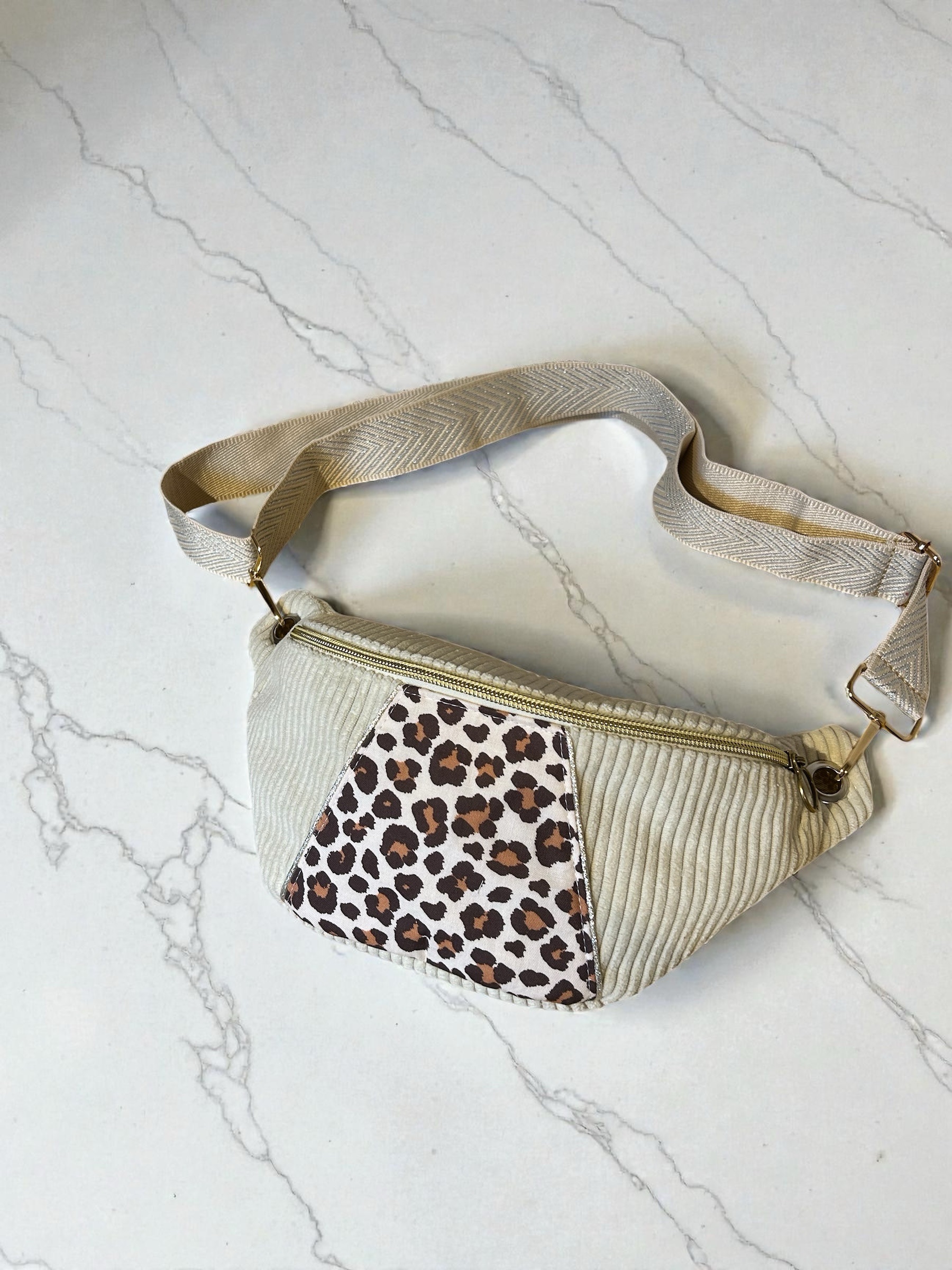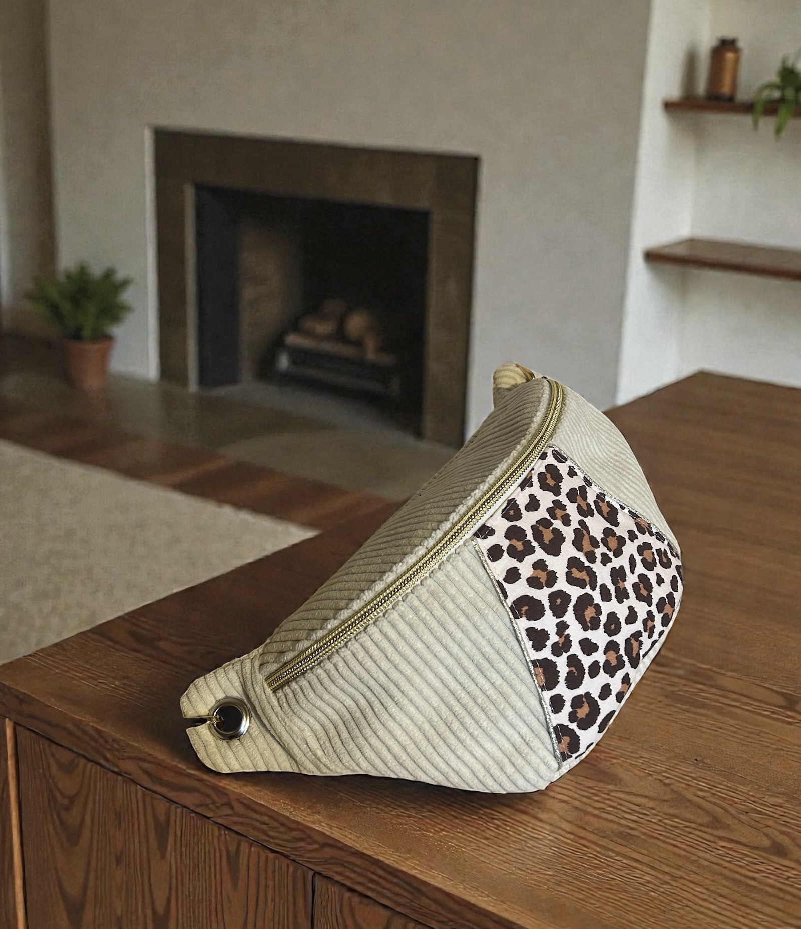 Tissu en velours côtelé beige pour l’extérieur et tissu en coton léopard.
